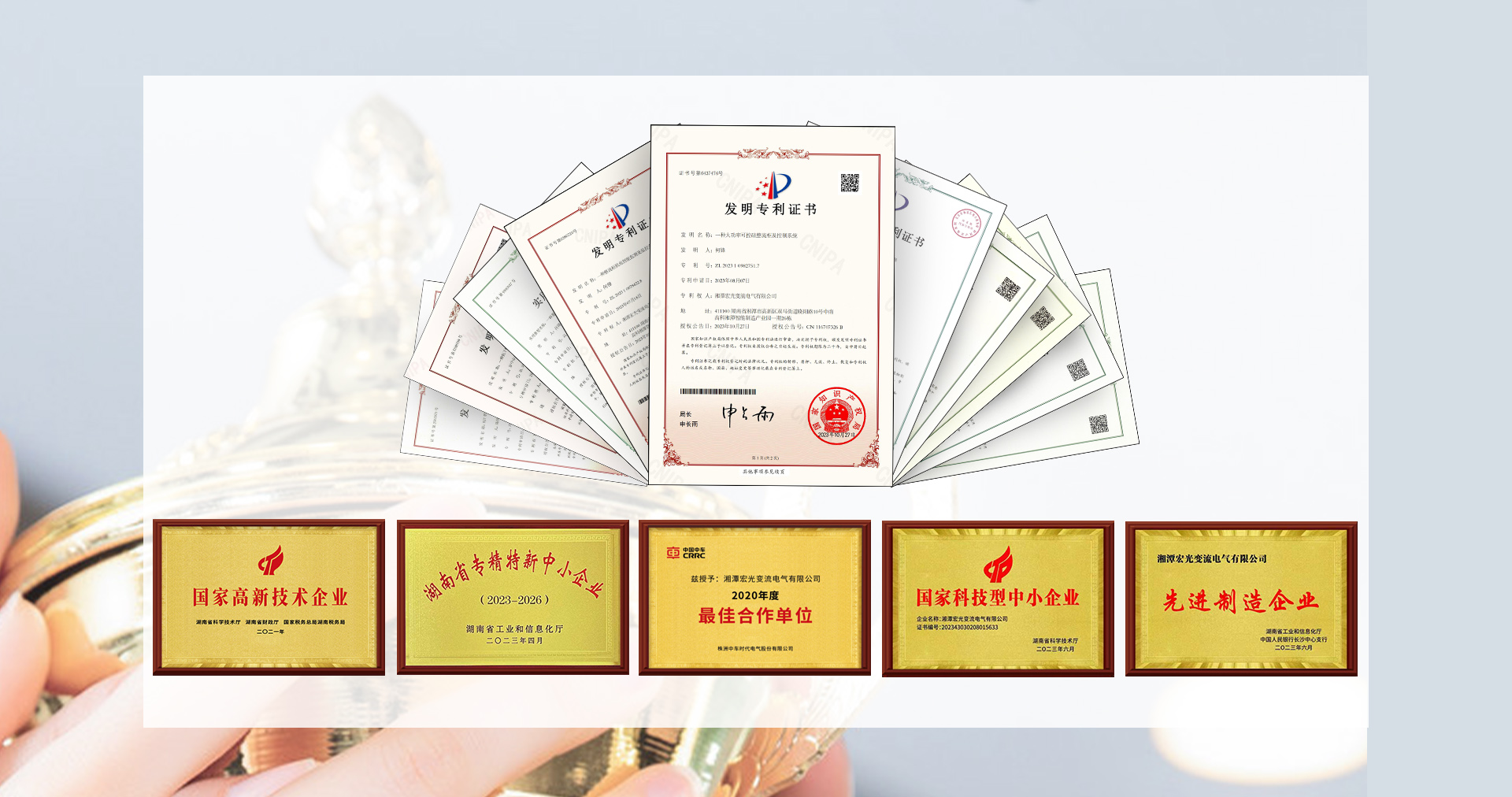技術為企業的第一生命力,公司秉承“專業、誠信、發展、卓越”的經營理念,始終重視研發投入和技術創新。公司先后被評為國家級高新技術企業和湖南省專精特新小巨人企業,現有各項專利20多項,其中發明專利4項,公司自主研發的“ZHS-460KA大功率整流器”榮獲湖南省首臺套科技獎和省級自然科學基金獎。